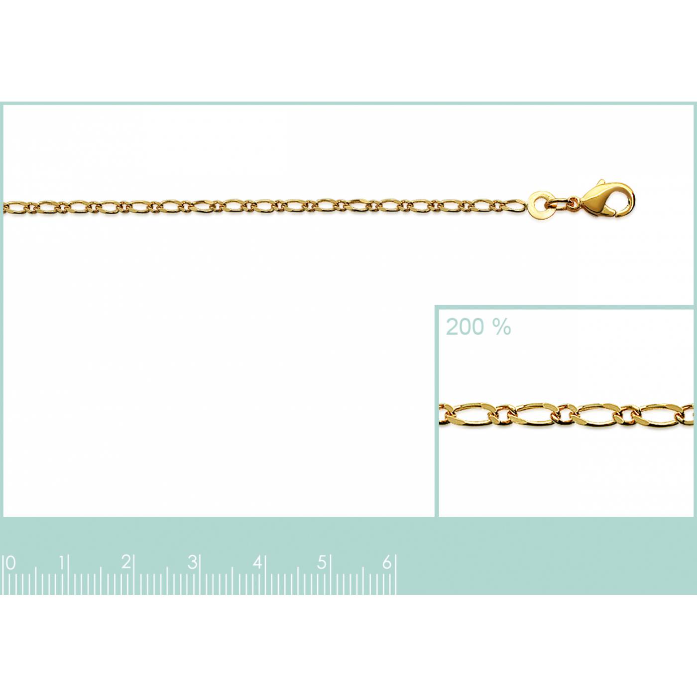 Cadena figaro bañado en oro #15813 para mujer. Cadena de la marca Bijoux en Vogue, una joya moderna resultado de la última colección . Cadena que podrá llevar cómodamente a diario o que se convertirá en un precioso regalo para mujer que podrá ofrecerle a lo largo de todo el año y en cualquier ocasión. Cadena con un elegante eslabón figaro de de ancho. Cadena en bañado en oro de calidad, que combina un diseño original y un look único.